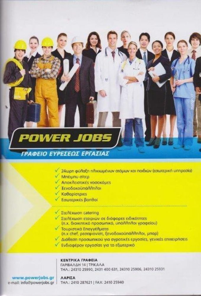 Έδρα του γραφείου Power Jobs είναι η πόλη των Τρικάλων Θεσσαλίας.