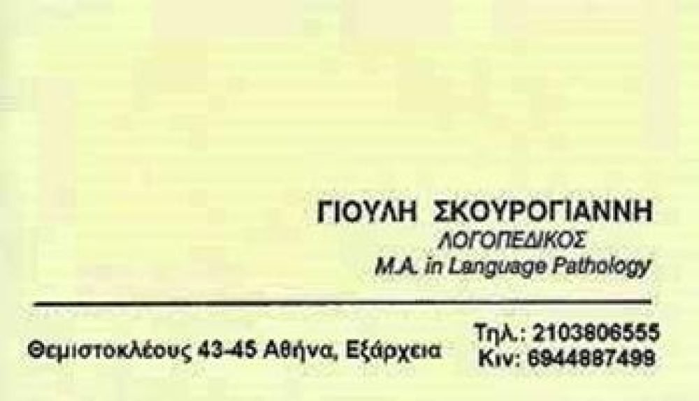 Λογοπεδικοί Λογοθεραπευτές Αθήνα Εξάρχεια Σκουρογιάννη Γιούλη