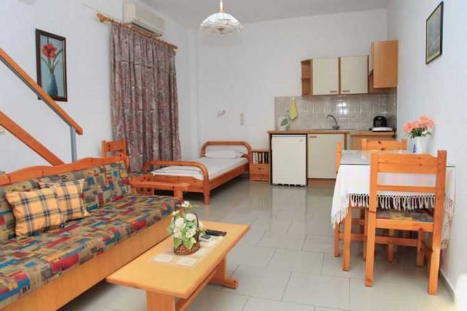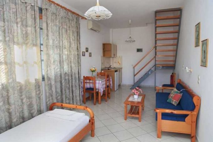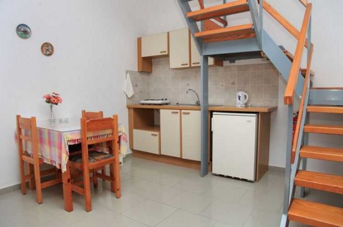 - Πλήρως εξοπλισμένη κουζίνα με όλα τα απαραίτητα οικιακά σκεύη και ηλεκτρικές συσκευές, όπως ψυγείο, ηλεκτρικό μάτι με 2 εστίες, βραστήρα, τοστιέρα