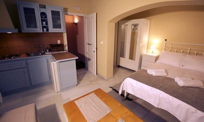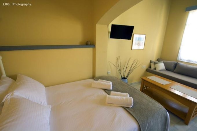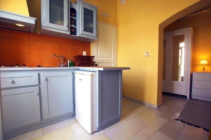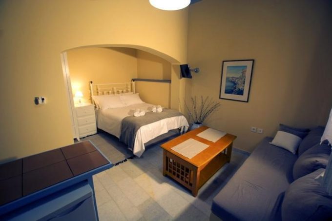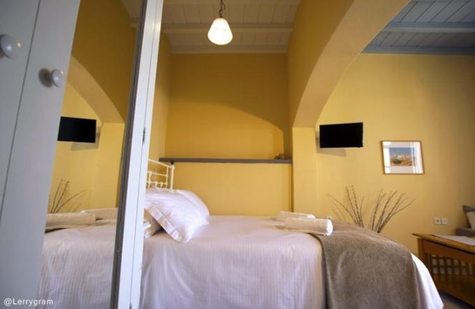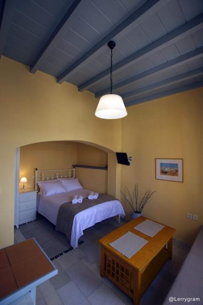 Διαμέρισμα φτιαγμένο με μεράκι και υψηλή αισθητική, αντανακλά την αίγλη και την ιστορία ενός τόπου που είναι από μόνος του μεγαλοπρεπής. Στο τρίτο επίπεδο του οικήματος ο επισκέπτης αντικρίζει με την πρώτη κιόλας ματιά ένα χώρο φιλόξενο, φωτεινό, ιδανικό για ξεκούραση και χαλάρωση. Το μαρμάρινο πάτωμα με το χειροποίητο μεταλλικό κρεβάτι και τα λευκά ξύλινα έπιπλα που κυριαρχούν στο χώρο αποπνέουν μια κυκλαδίτικη αύρα και αντανακλούν την αρχιτεκτονική ιστορία του νησιού. Την εικόνα του σύγχρονου αλλά και παραδοσιακού αυτού διαμερίσματος έρχεται να συμπληρώσει περίτεχνα το μπάνιο από πατητή τσιμεντοκονία και οι ξύλινες οροφές παντρεύοντας ιδανικά την ιστορία με το σήμερα. Το μπαλκόνι έρχεται να ολοκληρώσει την ατμόσφαιρα που ήδη έχει δημιουργήσει το εσωτερικό του διαμερίσματος απογειώνοντας την διάθεση του επισκέπτη. Η ιδιαίτερη κατασκευή του και η θέα στο λιμάνι ηρεμούν την ψυχή και ταξιδεύουν το πνεύμα.