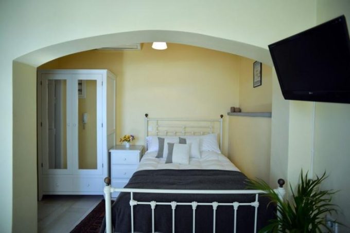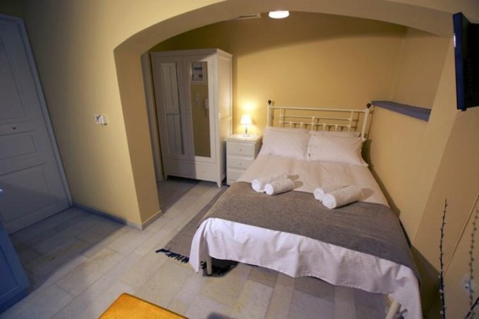 Διαμέρισμα φτιαγμένο με μεράκι και υψηλή αισθητική, αντανακλά την αίγλη και την ιστορία ενός τόπου που είναι από μόνος του μεγαλοπρεπής. Στο δεύτερο επίπεδο του οικήματος ο επισκέπτης αντικρίζει με την πρώτη κιόλας ματιά ένα χώρο φιλόξενο. Φωτεινό, ιδανικό για ξεκούραση και χαλάρωση. Το μαρμάρινο πάτωμα με το χειροποίητο μεταλλικό κρεβάτι και τα λευκά ξύλινα έπιπλα που κυριαρχούν στο χώρο αποπνέουν μια κυκλαδίτικη αύρα και αντανακλούν την αρχιτεκτονική ιστορία του νησιού.