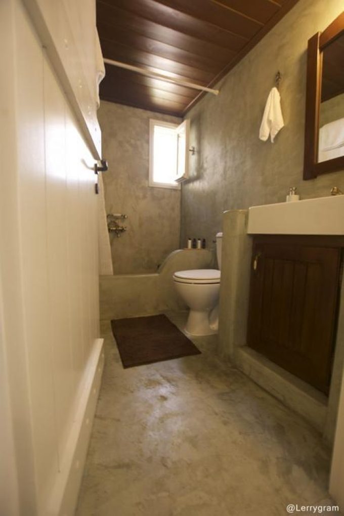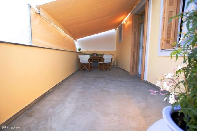 Την εικόνα του σύγχρονου αλλά και παραδοσιακού αυτού διαμερίσματος έρχεται να συμπληρώσει περίτεχνα το μπάνιο από πατητή τσιμεντοκονία και οι ξύλινες οροφές παντρεύοντας ιδανικά την ιστορία με το σήμερα. Η βεράντα έρχεται να επιβεβαιώσει την άνεση και την πολυτέλεια του διαμερίσματος.