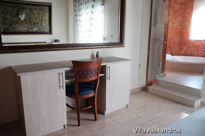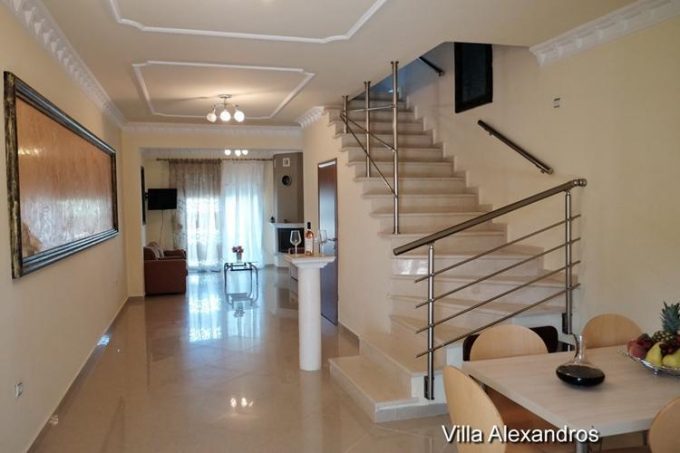 Στο ισόγειο κάθε βίλας υπάρχει ευρύχωρο καθιστικό με καναπέδες και tv, ευρύχωρη πλήρως εξοπλισμένη κουζίνα με την χρήση εσωτερικής σκάλας έχουμε πρόσβαση στα 2 ή 3 υπνοδωμάτια.