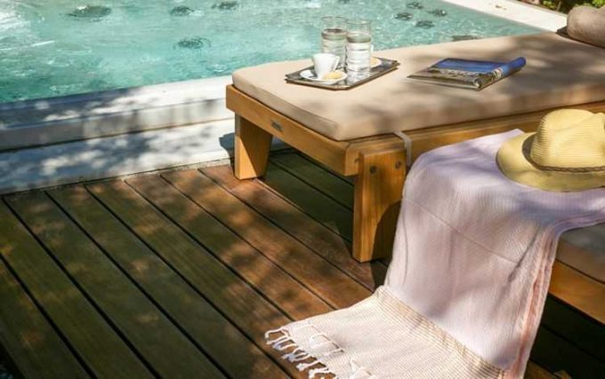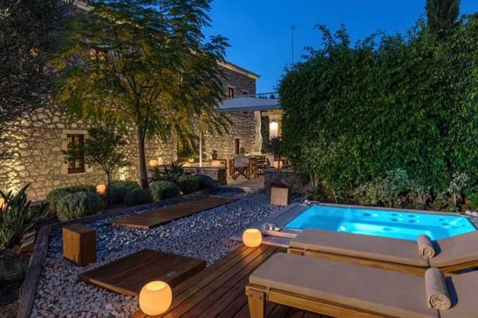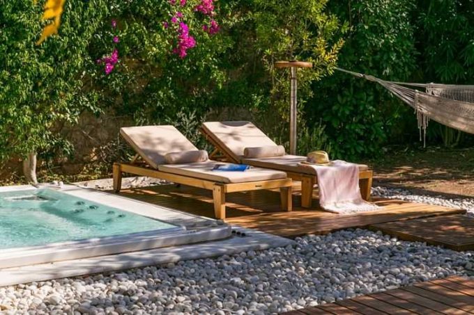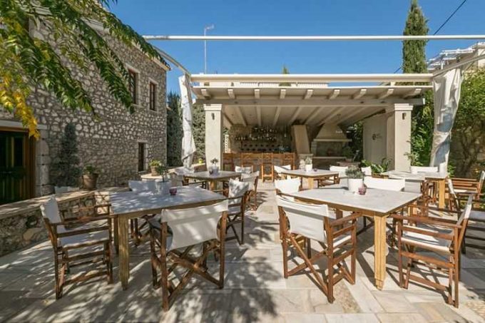 Στον άνετο εξωτερικό χώρο σερβίρεται μέχρι αργά το πρωί πλούσιο παραδοσιακό πρωινό, που περιλαμβάνει και σπιτικές χωριάτικες πίτες, φτιαγμένο με τα πιο φρέσκα ντόπια προϊόντα. Δροσιστικά ποτά, καφέδες, κρύα πιάτα και σαλάτες σάς περιμένουν στο υπαίθριο μπαρ που παραμένει ανοιχτό ως τα μεσάνυχτα. Πιο δίπλα, στον κήπο με το γιασεμί και τη λεβάντα, ένα τζακούζι 6 ατόμων χαρίζει πολύτιμες στιγμές χαλάρωσης, ενώ στο ανοιχτό μπάρμπεκιου ψήνονται λαχταριστές λιχουδιές…
