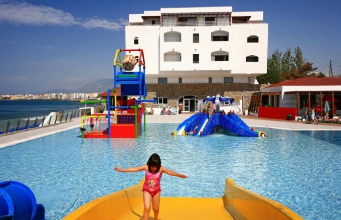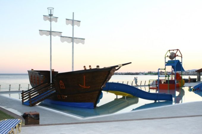 Οι εξωτερικοί χώροι εκτός από τους ωραίους κήπους διαθέτουν ένα μοναδικό χώρο για παιδιά που αποτελείται από παιδική χαρά , ειδικά διαμορφωμένη αίθουσα (children’s club) και μια μεγάλη παιδική πισίνα με ένα πειρατικό καράβι με τσουλήθρες και διάφορα άλλα παιχνίδια για την διασκέδαση των μικρών μας φίλων. Υπάρχουν ακόμη μια μεγάλη πισίνα με γωνία υδρομασάζ, δίπλα από αυτή το σνάκ μπάρ και το αμφιθέατρο για τις διάφορες εκδηλώσεις.