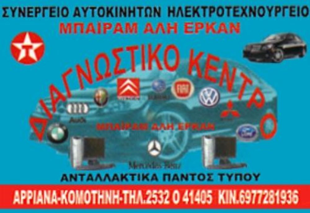Το συνεργείο – ηλεκτρολογείο αυτοκινήτων “Erkan Service” εδρεύει στα Αρριανά Ροδόπης και αναλαμβάνει παντός τύπου επισκευές. Είμαστε σε θέση να εντοπίσουμε οποιοδήποτε πρόβλημα χάρη στο διαγνωστικό κέντρο μας.